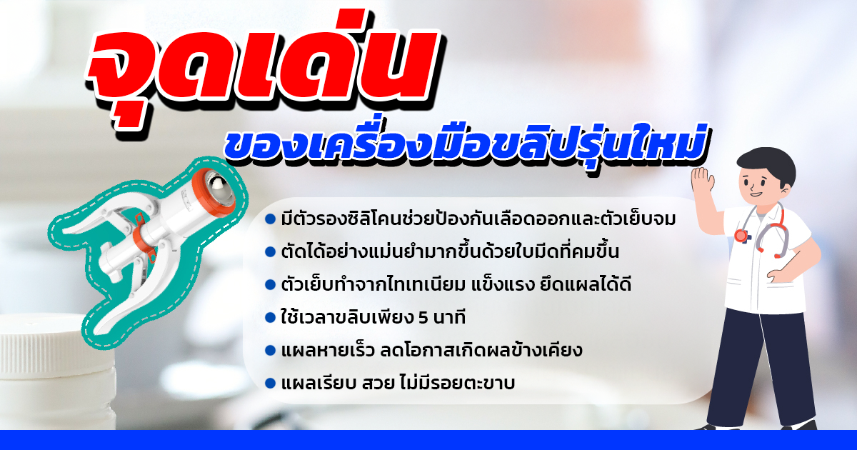 - มีตัวรองซิลิโคนช่วยป้องกันเลือดออกและตัวเย็บจม
